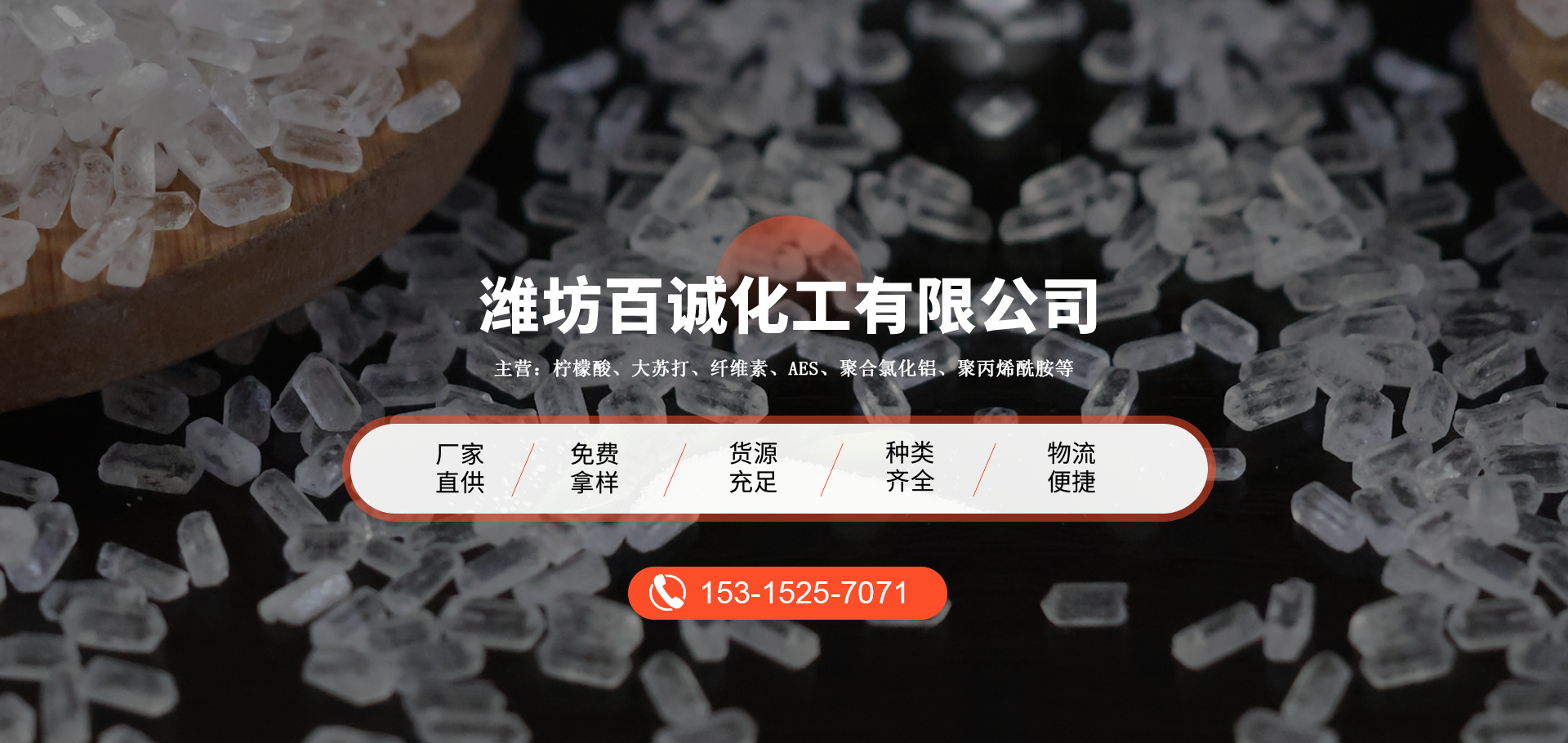 以品質贏得客戶滿意口碑成立于山東的濰坊百誠化工有限公司多年來與國內外多家企業工廠 形成長期合作,形成了競爭力的化工原材料供應、銷售和服務 渠道,主營:大蘇打、葡萄糖、檸檬酸、纖維素、消泡劑、AES等。